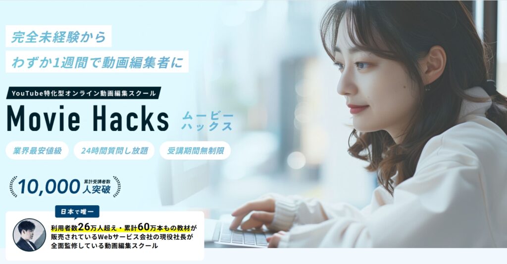 - 未経験でも土日の2日間で現場レベルのYouTube動画編集をマスターできる