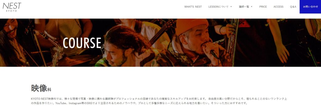 KYOTO NESTはラップやダンス、ギターなどのレッスンもおこなっているスクールで、映像科ではYouTube動画の編集を学べます。