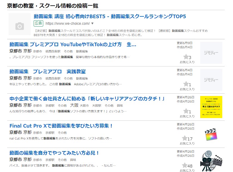 動画編集スクールとは少し違いますが、ジモティーを利用して家の近くで動画編集を教えてくれる人を探す方法もあります。
