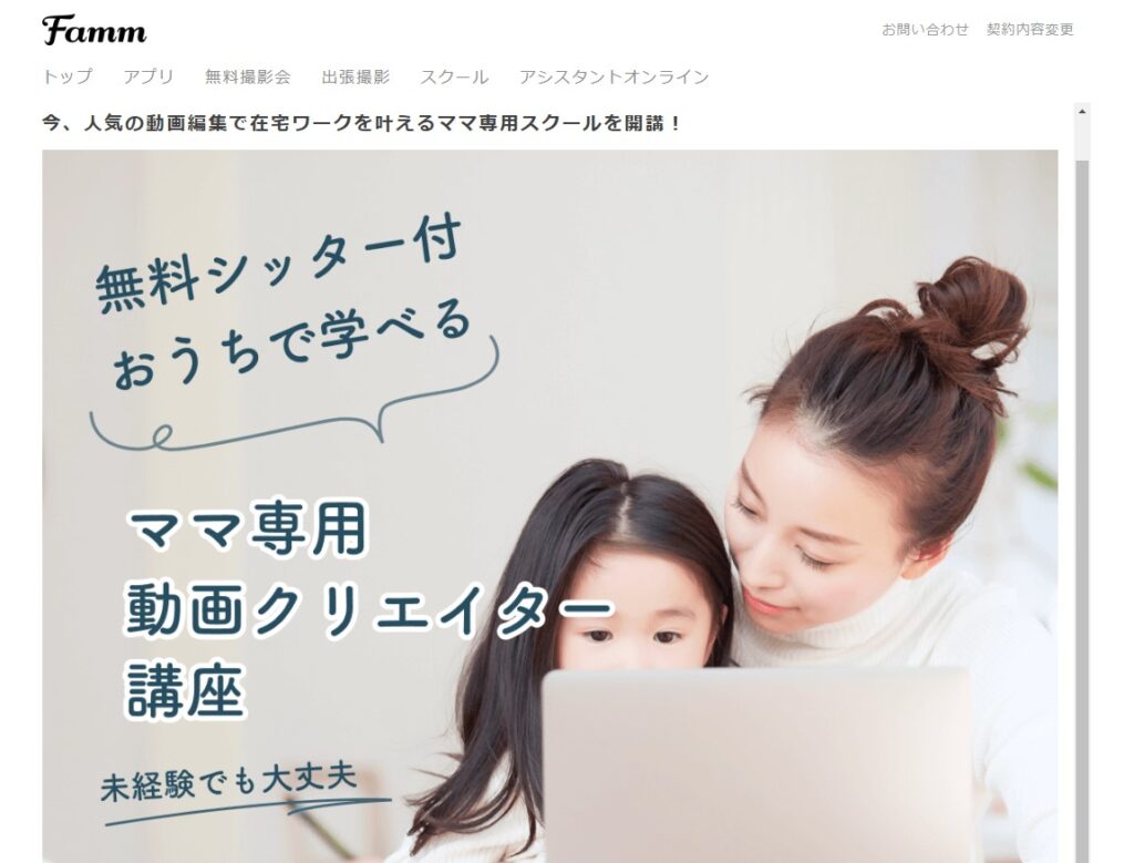 Fammの動画クリエイター講座は、小さいお子さんがいながら動画を学べるママ向けのスクールです。