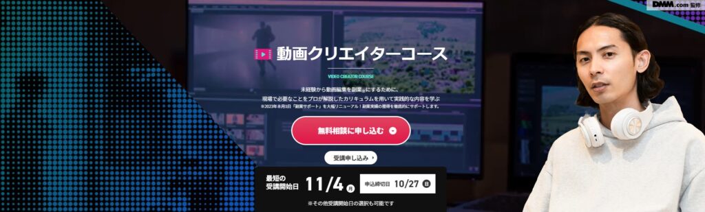 DMM WEBCAMP動画クリエイター講座は、副業サポートが手厚いスクールです。案件獲得に関するカリキュラムや、メンターによるマンツーマンサポートなど、未経験でも仕事を得やすい環境が整っています。
