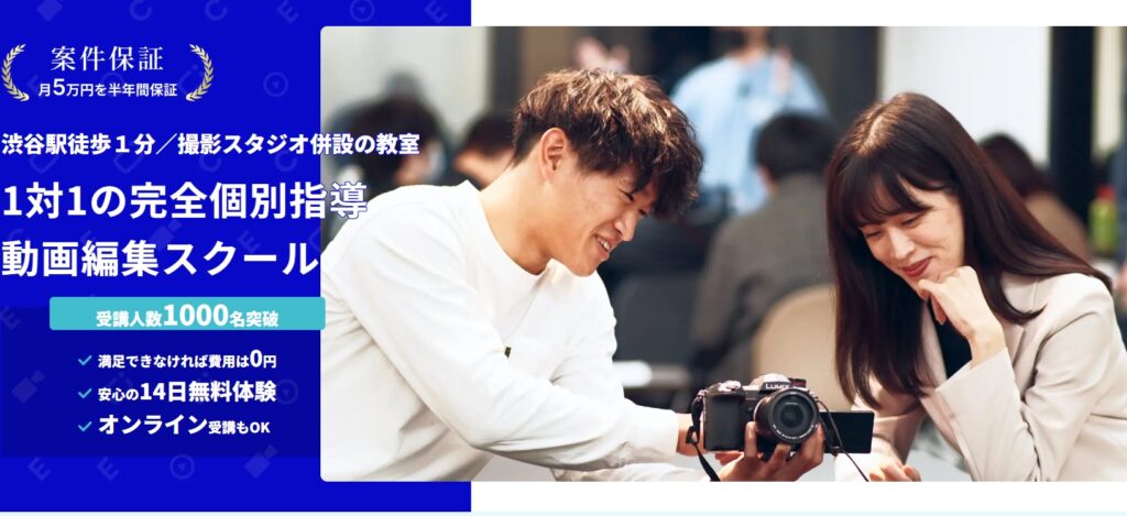エディターキャンプは渋谷に校舎を持つ動画編集スクールです。通学はもちろん、オンラインでの受講も可能で、自分のライフスタイルに合わせて学習方法を選べます。