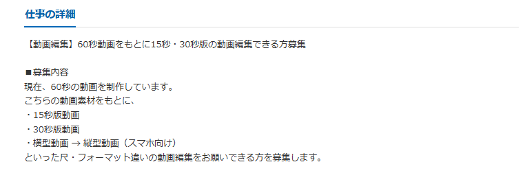 こちらでは、実際に掲載されているスマホOKの動画編集案件をピックアップしました。案件のイメージを掴むために、ぜひ参考にしてみてください。