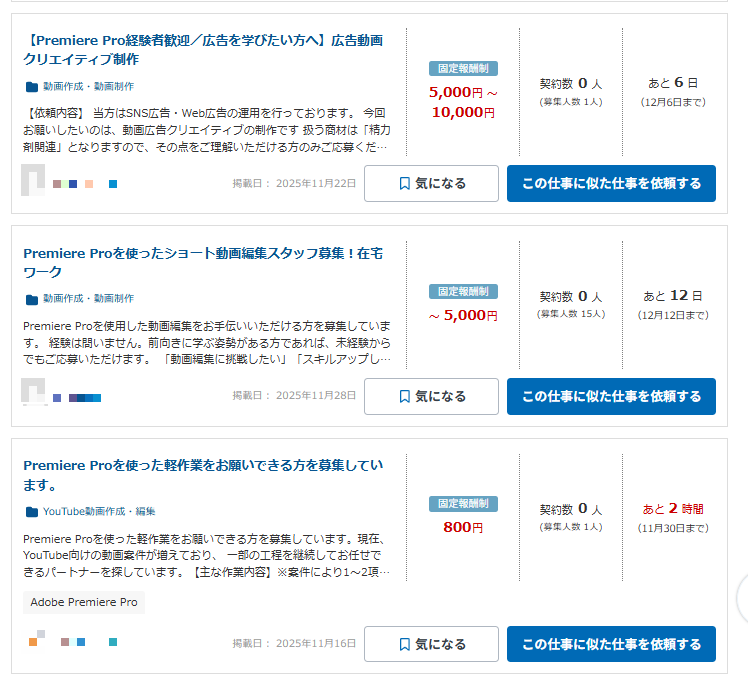 → 最も案件が豊富な Adobe Premiere Pro がおすすめ
