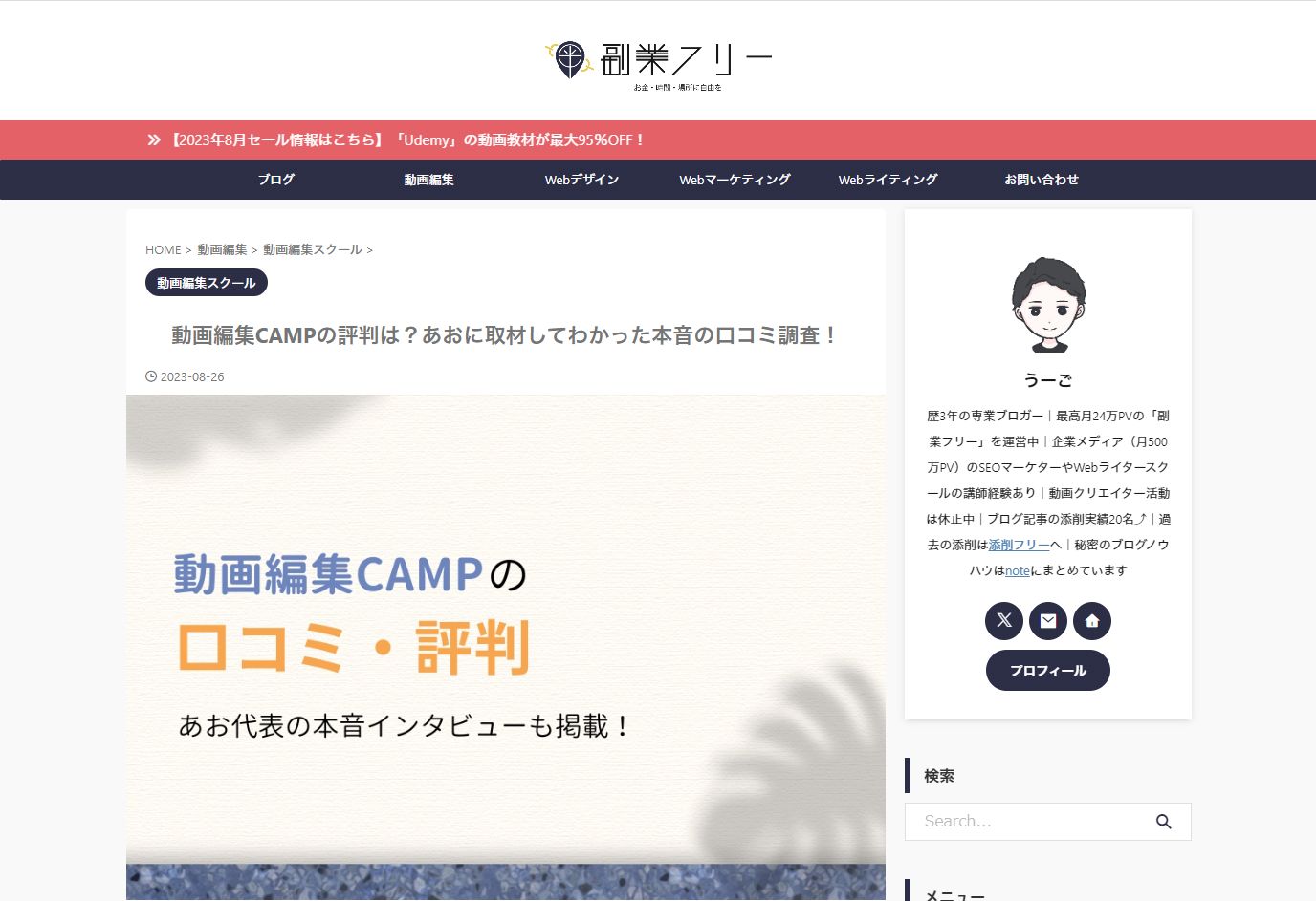 エイチリンク株式会社様のメディアにて動画編集CAMPをご紹介いただきました! 2026.01.13 中小企業ホームページのSEO対策に強いエイチリンク株式会社のメディアにて、動画編集CAMPをご紹介いただきました! <掲載記事はこちら> BtoB中小企業がリードを獲得するための手法一覧とおすすめBPOサービス Movie Mania様で動画編集CAMPをご紹介いただきました! 株式会社TENSEN様のメディアにて動画編集CAMPをご紹介いただきました!