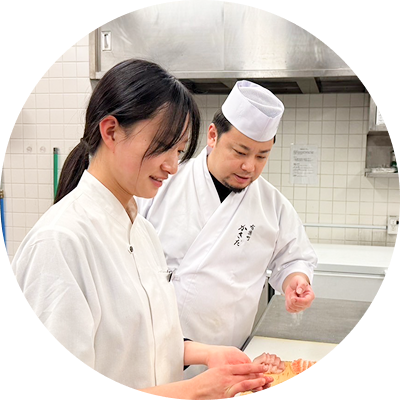 豊洲市場の仲卸とも深い関係を持ち、魚の扱い方、シャリの仕込み、握りの技術を現場レベルで指導します。プロの技を間近で学びながら、寿司職人としての第一歩を踏み出しましょう!